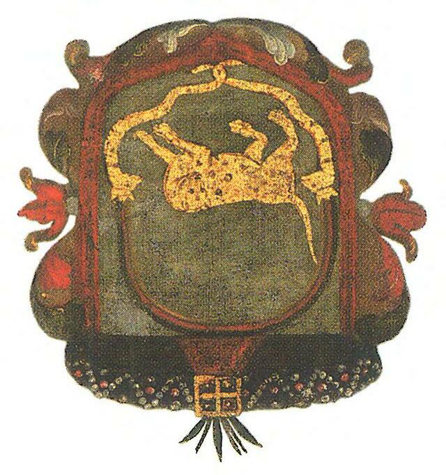 Este tipo de imagen del inca apareció muy tempranamente en la historia del virreinato peruano. Creada por un artista para que fuera incluida en el nuevo escudo de armas otorgado por Carlos V a Francisco Pizarra en 1538, la figura de Atahualpa adquiere una cualidad emblemática. Según la provisión real, el rey inca debía ser mostrado con sus brazos abiertos y sus manos metidas en cofres llenos de oro. Se le debía representar con la corona incaica (una borla colorada) sobre la frente, así como con su collar de oro. En las márgenes debían colocarse los siete capitanes/ caciques indios, identificados con sus nombres: "Quiz Quiz, Cuchiman, Yncarabilpa, Yrn garaga, Unanchullo, Luminambi, y Maitapopamque".Alrededor de sus cuellos tendrían una cadena de oro que los enlazaba a todos, y sus manos estarían atadas para mostrar que eran prisioneros. El escudo debía estar coronado por un casco sobre el cual se alzaba un león que sostenía una espada desenvainada y sangrienta . Esta nueva invención debía añadirse a las armas de los antepasados de Pizarra, así como las que Carlos V ya le había otorgado, que incluían las Columnas de Hércules y el lema Plus Ultra. La provisión real daba a Pizarra y sus descendientes licencia para que lucieran su escudo de armas, esculpido y pintado, donde-