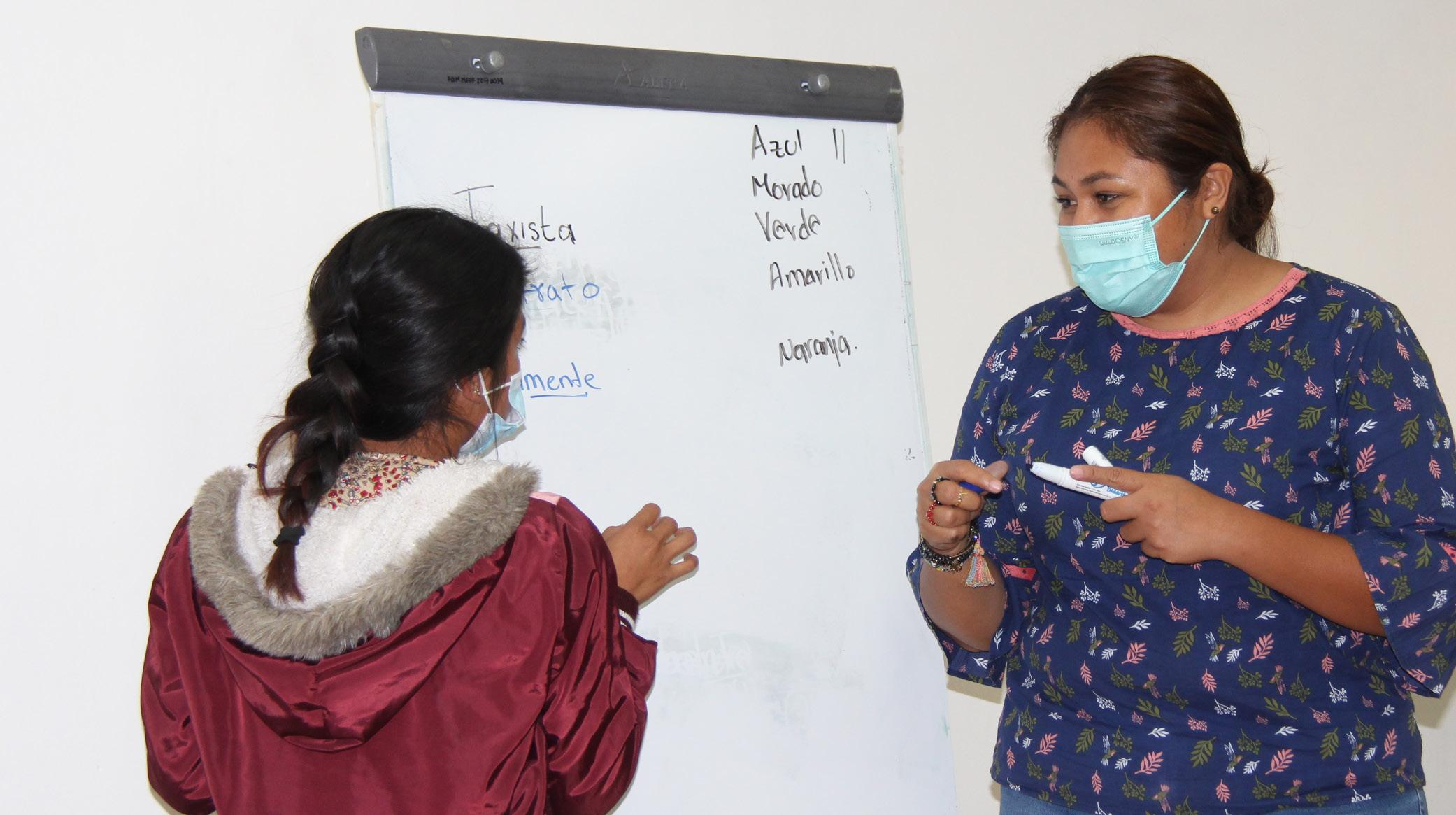 Para realizar un ejercicio práctico, escribieron leyendas que prevalecen en sus comunidades de origen, posteriormente lo leyeron en voz alta y en equipos identificaron palabras que desconocían y con ayuda de la especialista, corrigieron la ortografía.