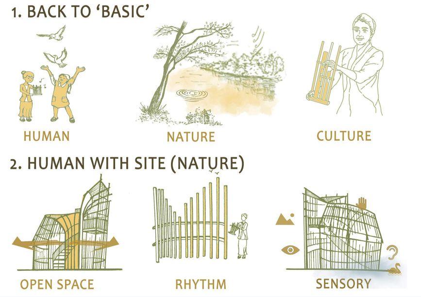 Viewing from the bridge, the structure gives a sense of rhythm in relation to Angklung.