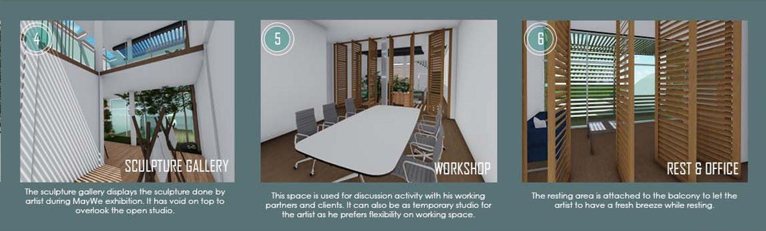 The project is an infill project in an existing building with rich contextual values. Existing building structure of old shophouse is maintained and basic sustainable approaches are incorporated. In this project, an art gallery and artist workshop is designed with an intention to showcase art works as well asworkspacesinthecentreofcapitalcity, Kuala Lumpur.