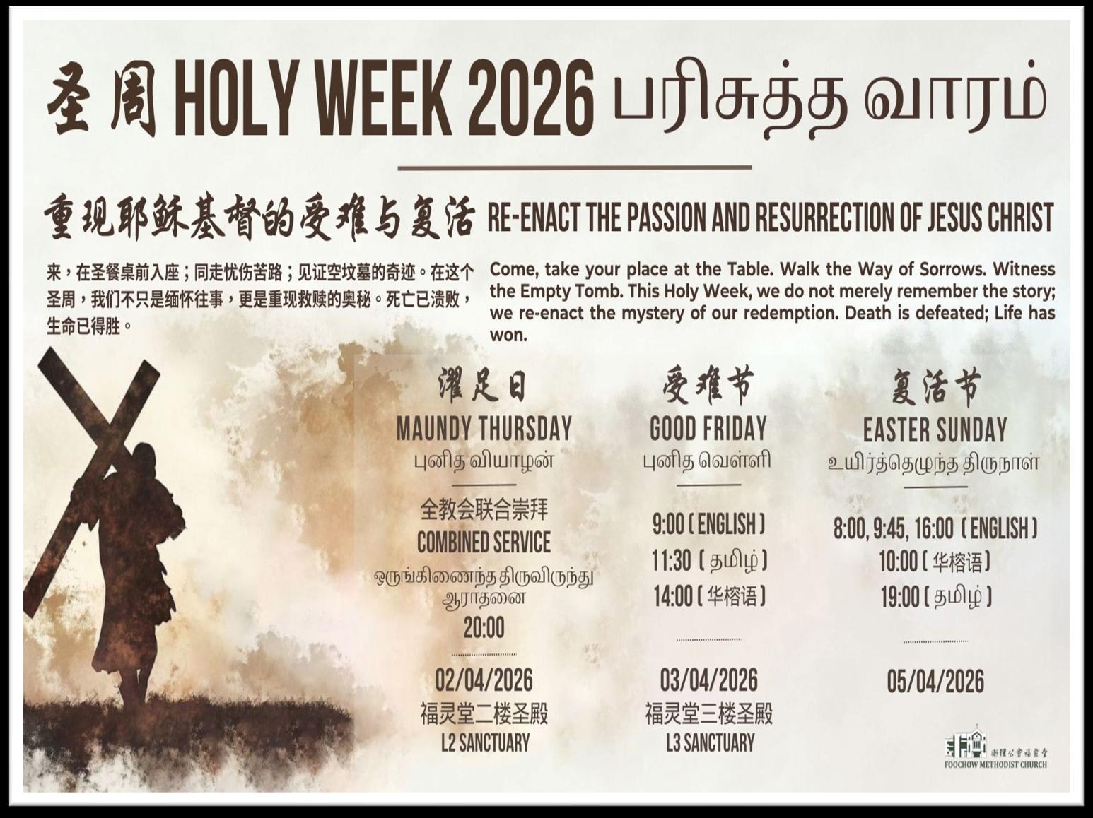 当福灵堂踏入第129年的历史之际;我们也如以色列民一样站在应许 之地的边缘。我们正在一个重要的关口,展现面前的是一个新的季 节 不仅是教会生命的更新,也包括我们周围环境的改变,尤其 是教会对面的新居民即将入住。上帝正在我们当中展开新的工作。 祂也呼召我们,预备自己与祂同工。