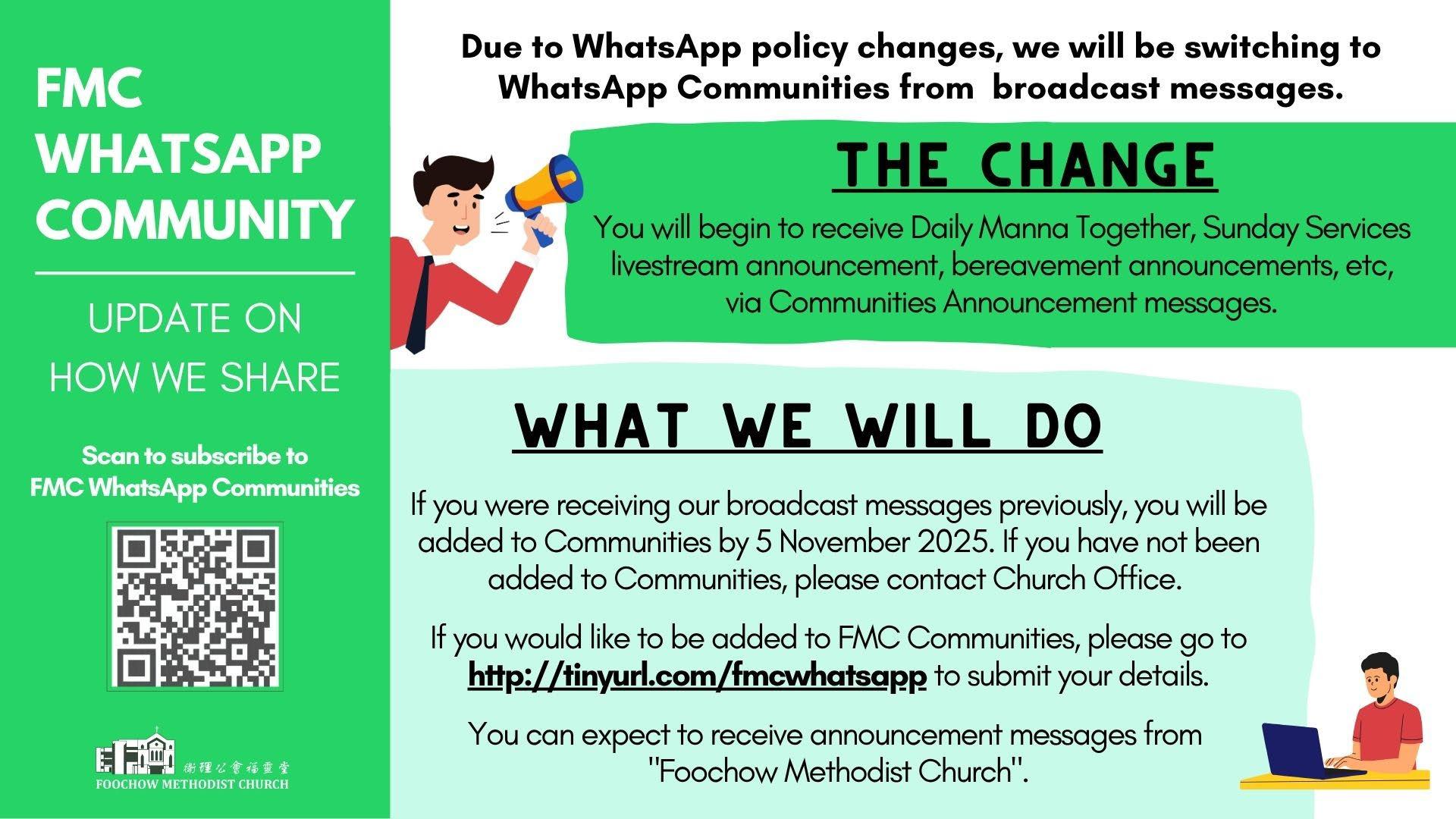e-Receipts will be sent to you via the Church WhatsApp number. We assure members that such e-receipts are NOT sent as broadcast messages to the whole church.