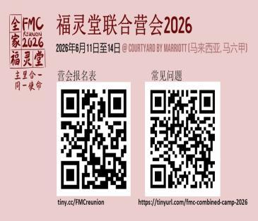 Zoom 链接:https://tinyurl.com/FMCMFPrayerMeeting Meeting ID: 889 5788 9150