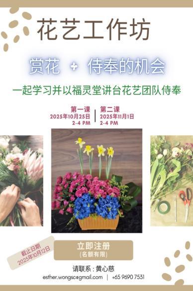 报名方式:请电邮estherwongsc@gmail.com或 WhatsApp 9690 7531联系黄心慈姐妹Esther Wong