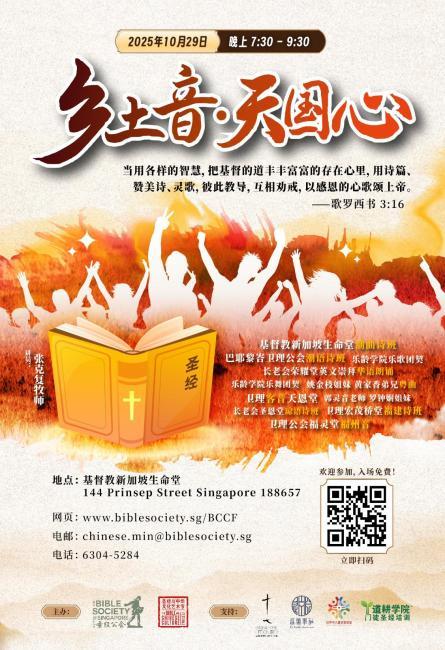 与中华文化之夜」,将由多所教会、团契与歌唱 家携手,以诗歌、诵读、舞蹈等艺术形式,结合 传统乡音(闽南、客家、潮州、海南、粤语、福 州),展现圣经真理。