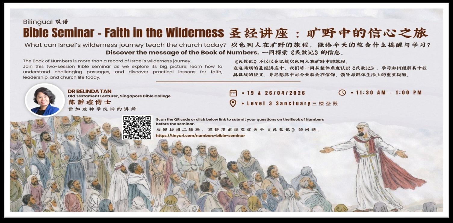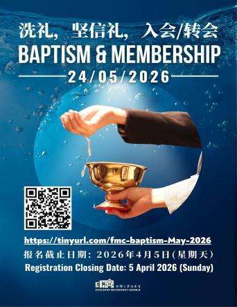 凡是愿意于5月24日(五旬节主日)洗礼(成人或幼儿 洗)、入会/转会、坚信礼(16岁或以上)的弟兄 姐妹,请向教牧同工、办公室同工索取 表格报名;亦可点击以下报名链接或 扫描二维码上网报名。
