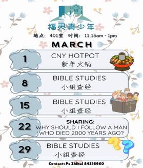 一个向长辈分享福音,让长辈更知救恩宝贵的聚会。 欢迎大家踊跃邀请亲戚朋友前来。