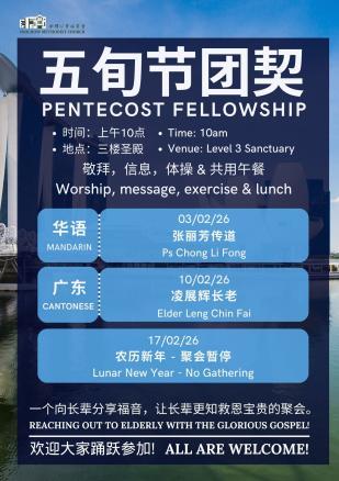 时间:上午10时(敬拜、信息、体操 & 共用午餐) 地点:三楼圣殿