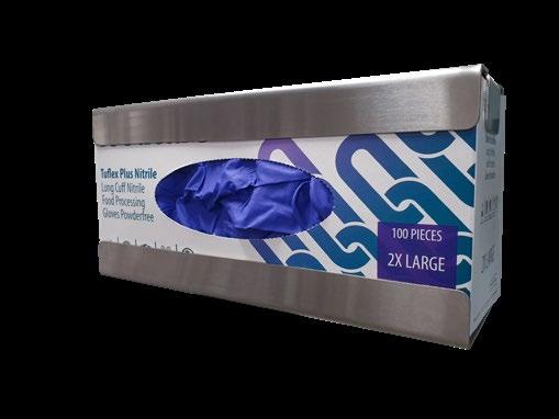 Gloves 15 E&OE Latest products and prices: foodcare.com.au Tuflex® Long Cuff Disposable Nitrile Gloves - Blue UOM Size Code Trade Pricing Carton 1000 (10 boxes of 100) S DGN-0030-S Login to our website for your pricing M DGN-0030-M L DGN-0030-L XL DGN-0030-XL 2XL DGN-0030-2XL 3XL DGN-0030-3XL Packing: carton of 1000 gloves | 40 cartons per pallet Prices are GST exclusive Excellent puncture resistance and strength Excellent barrier protection over latex and vinyl Superior fit, feel, and dexterity Latex free Ambidextrous Comfortable beaded cuff will help prevent rolldown as well as limiting drips from extending past glove Long cuff – 285 mm longfor extra protection Powder free Food safe See glove box dispensers on pages 67-73