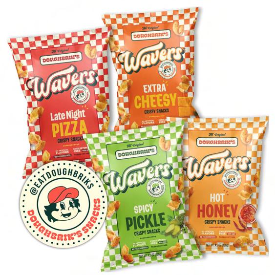 The Original Doughbrik’s Snacks Wavers are an innovation to the chip category, introducing a wavy, crunchy snack. Each piece is a slightly different shape which creates a unique texture every time. The goal of the chip is to not just be a snack, but represent a memory from Dobrik and Fedorovich’s friendship, seasoned by innovation and authenticity. They are made with clean-label ingredients, are non-GMO, free of artificial flavors and preservatives, and contain only 140 calories per serving.