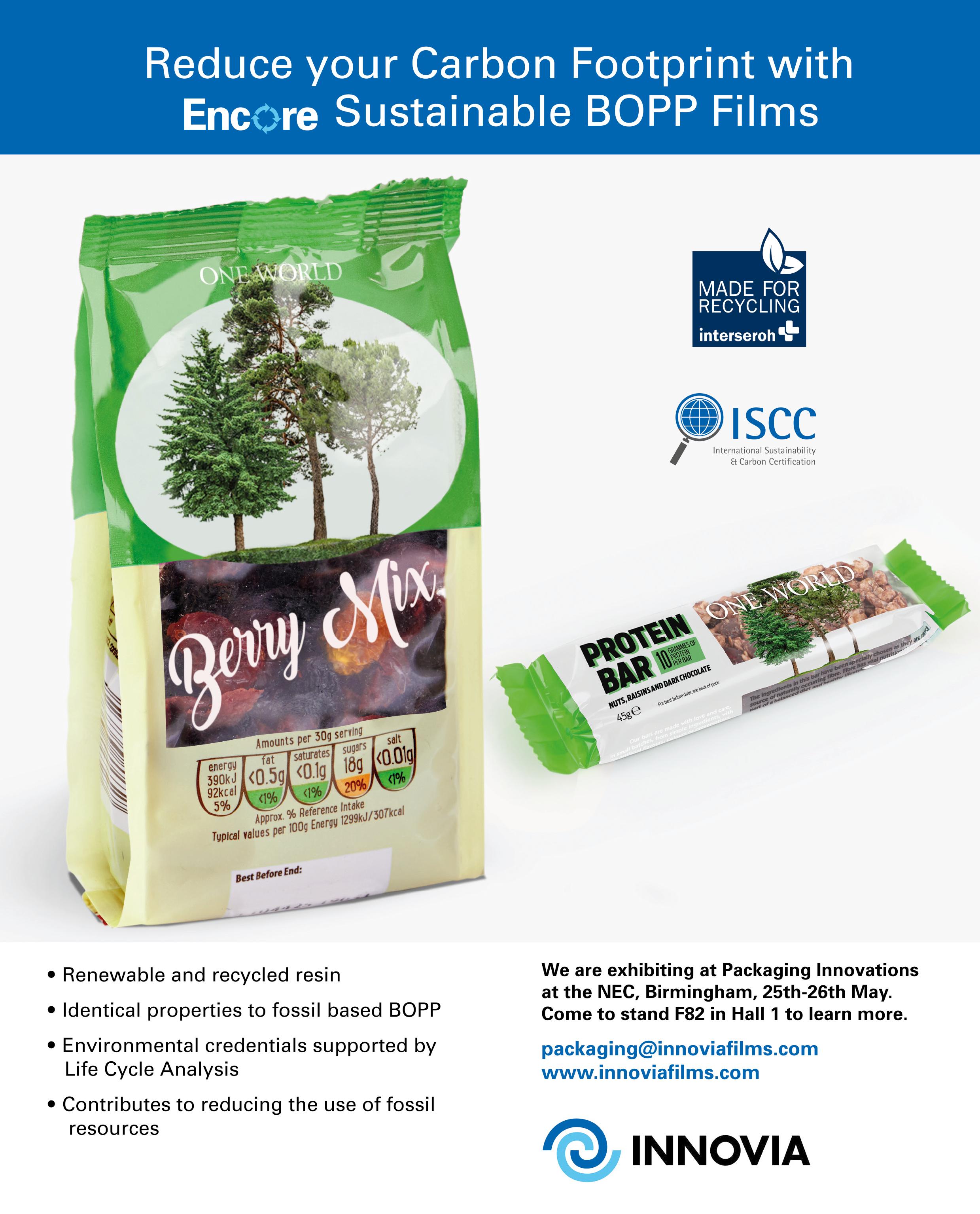 The packs are made from matt and metallised film with 30% recycled content, meaning they are exempt from the Plastic Tax.
