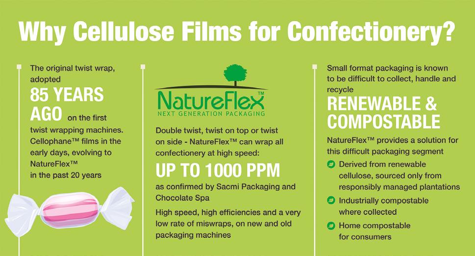 According to Futamura Sales & Marketing Director, Andy Sweetman; “the combination of exceptional wrapping performance coupled with an enhanced end of life solution make NatureFlex the logical choice in small format flexible applications such as twistwrap”