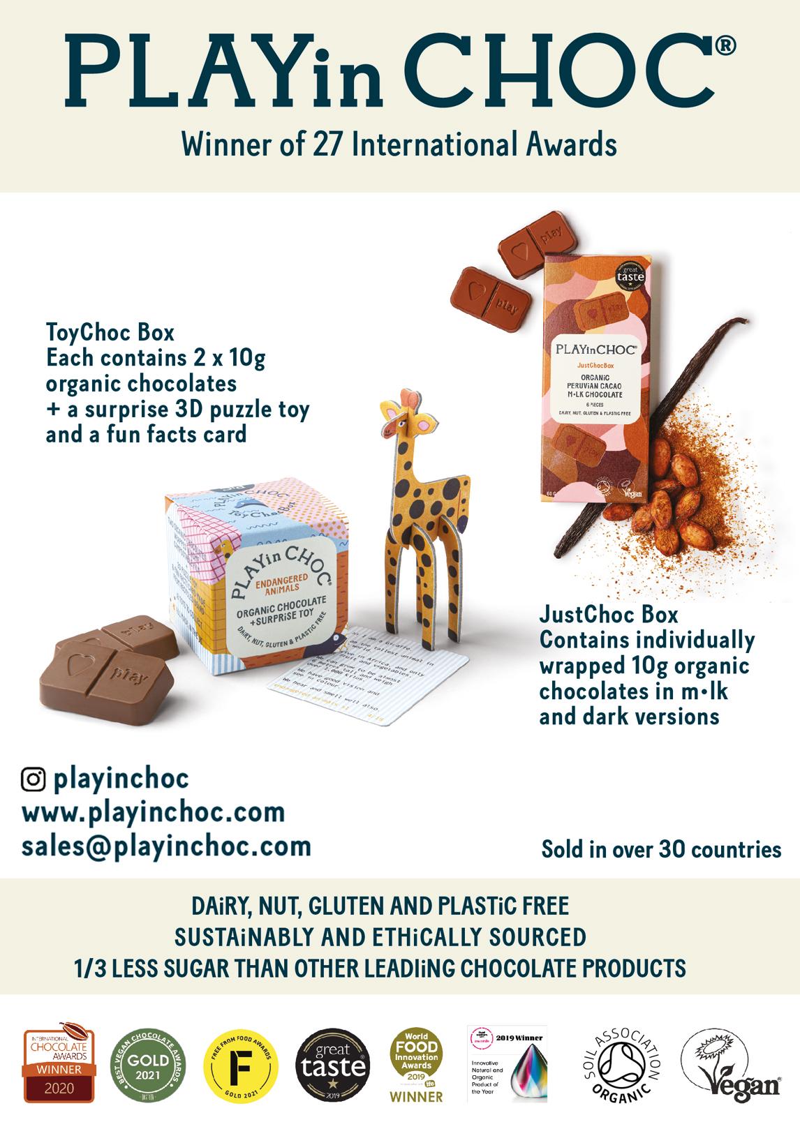 This is our pick of the best exhibitors from this years show, listed here in alphabetical order: Cake UK, COTR Drinks, Creative Nature, Ditchling Spirits, Eatplanted, ESMA Foods, Harker UK, PLAYin Choc, Sweetland London, The Finest Cake, Nuisance Drinks & Refreshing Drinks. Further details can be found on the next two and a half pages.