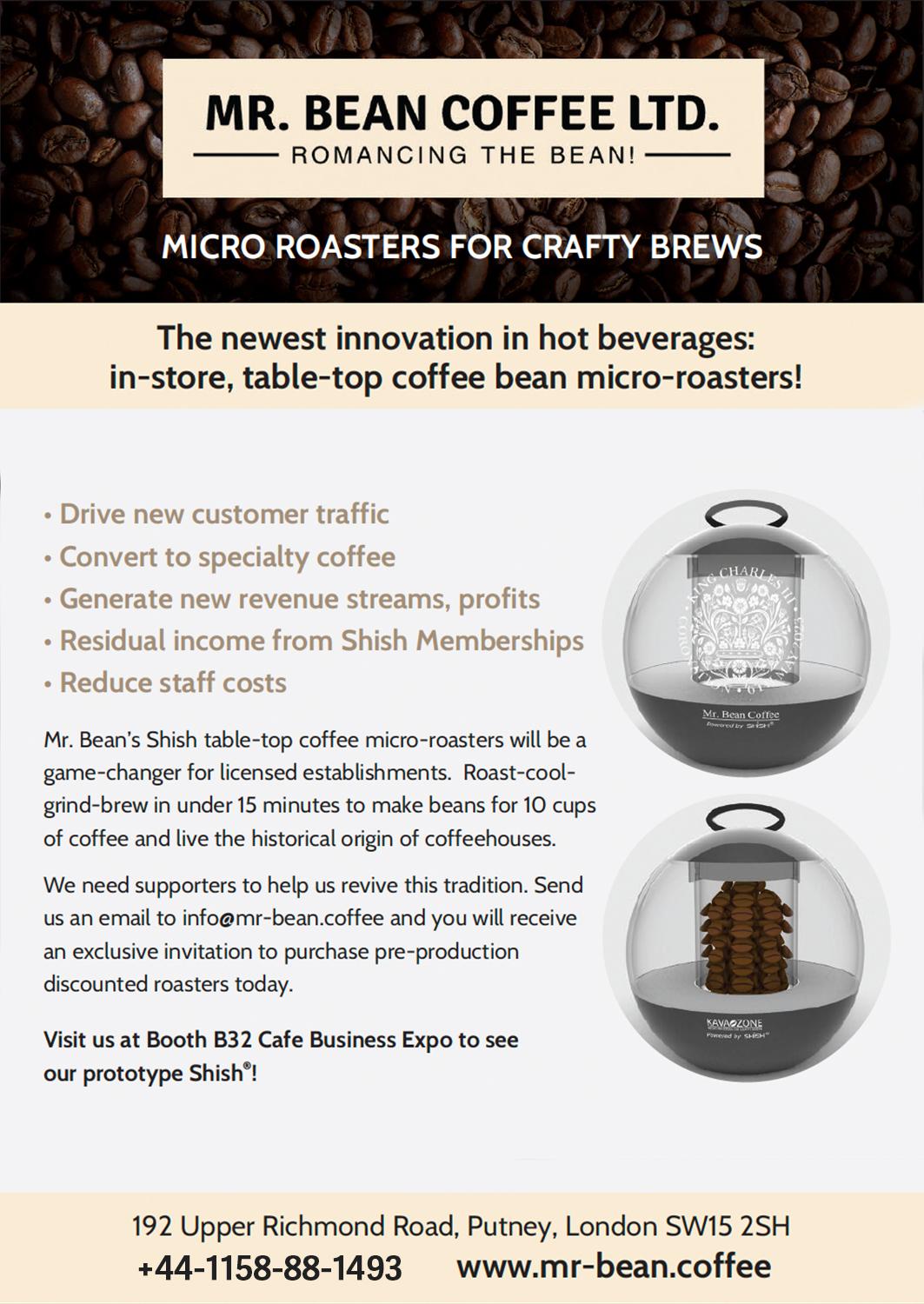 Visit Mr. Bean Coffee on Stand B32, Cafe Business Expo, ExCeL, London on 10-11 October 2023 to see our prototype Shish roaster in action.