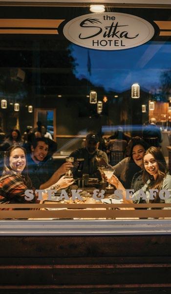 their rotating list of beers, and pubs that offer house made signature cocktails like Salmonberry Mojitos and Bloody Mary’s topped with beach asparagus. Sitka has bakers, and chocolate makers, handmade donuts and local catch ceviche! Look for other local ingredients on your plate like seasonal berries, wild edibles, and handcrafted favorites like artisanal sea salt and crunchy kelp pickles. Whether you prefer grilled steak and hand-made pasta, or are craving a food adventure in a Mediterranean inspired “Wild Alaska” paella, Sitka’s restaurants are ready to safely serve you.