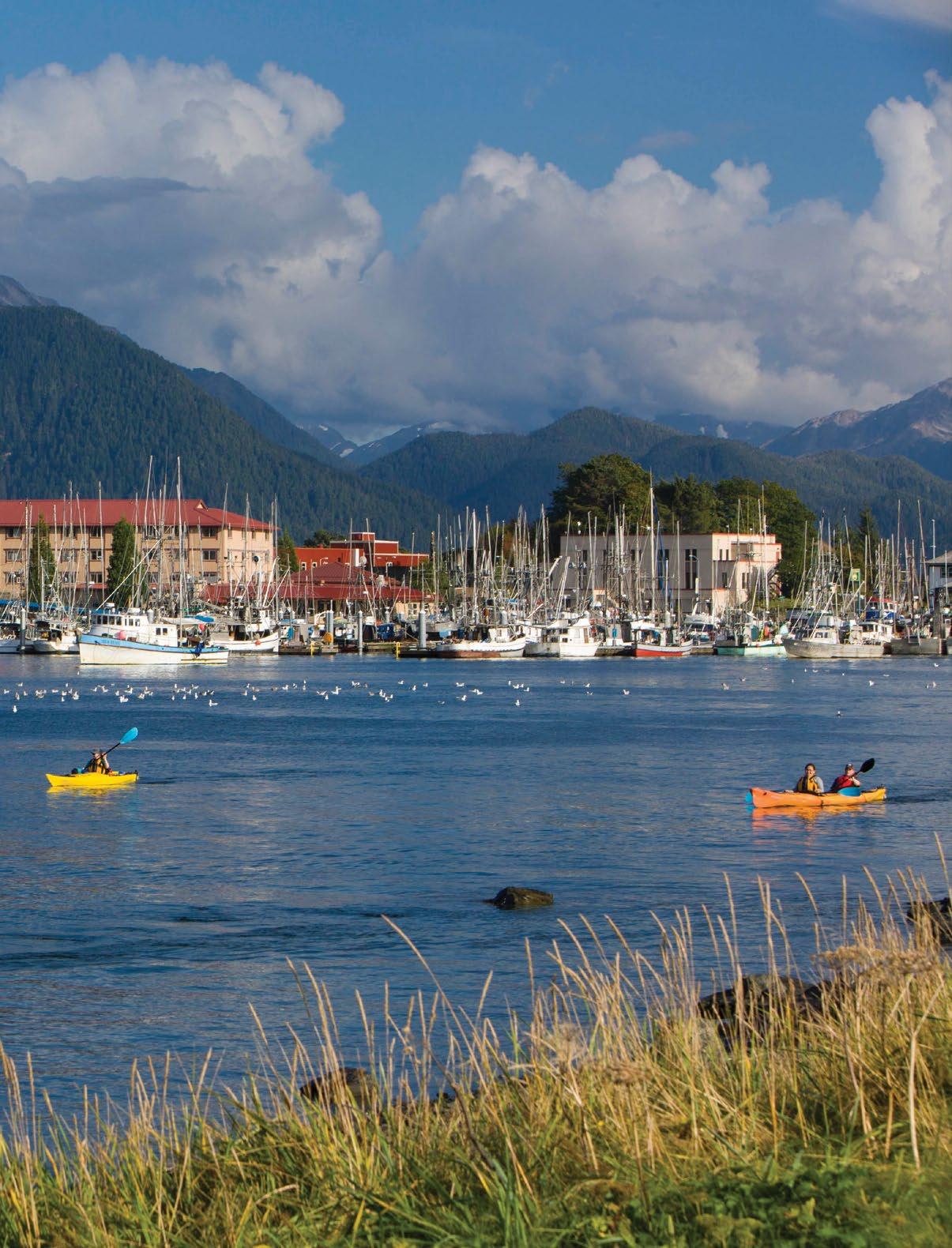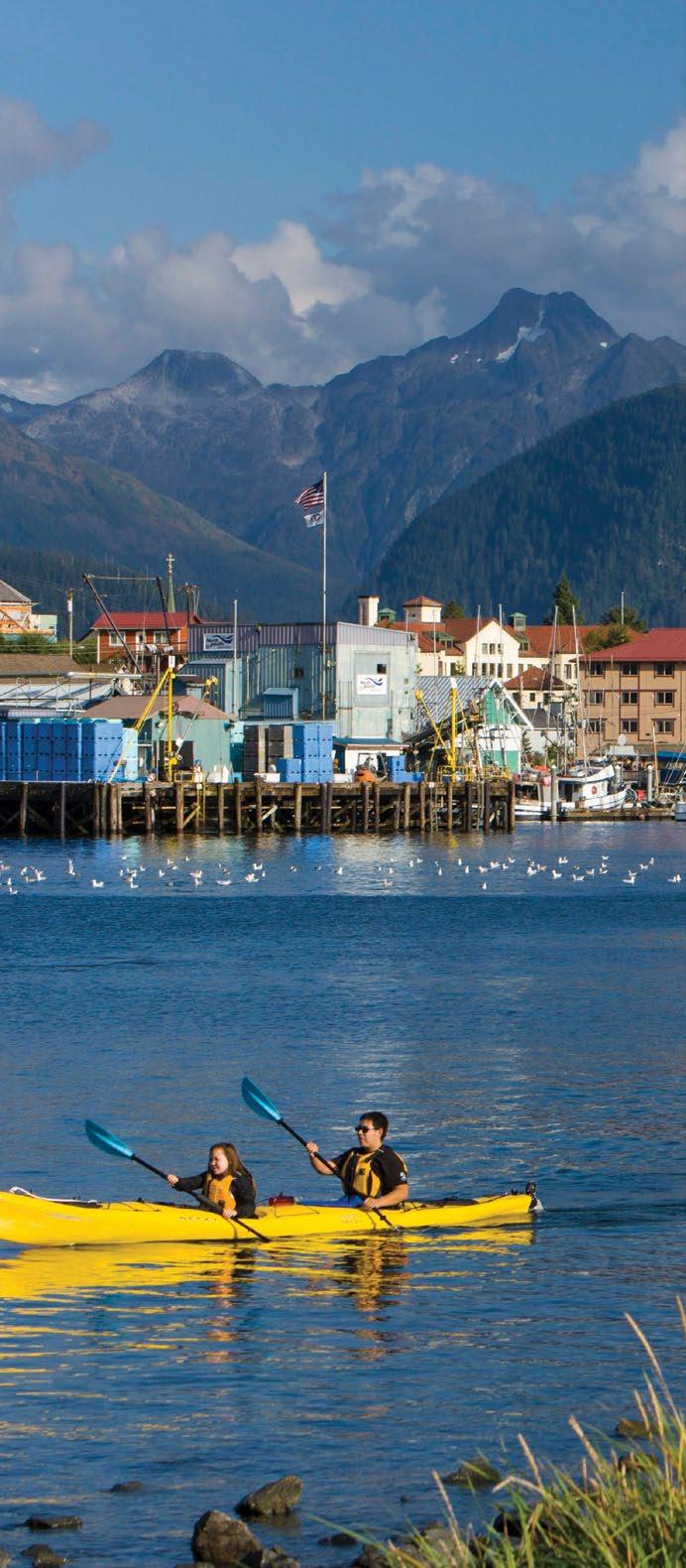 direction and you’ll see snowcapped peaks, islands the color of emeralds, and pristine ocean. In addition to the stunning surrounding scenery, kayaking is an opportunity to get up close and personal with Sitka’s abundant marine wildlife: humpback whales, orcas, sea lions, and otters.