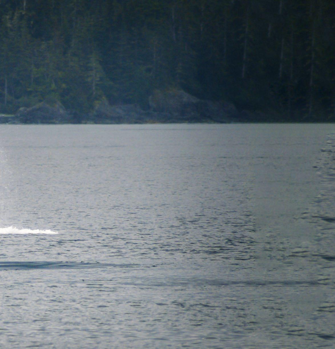 Scan for the blow of a humpback whale and the splash of a sea lion