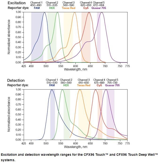At CFX96-systemet har åbent software er en stor fordel, det betyder at det er muligt at anvende en lang række forskellige kits, så længe de anvender de samme bølgelængder (FAM, HEX/VIC, Texas Red, Cy5 og Qasar705).