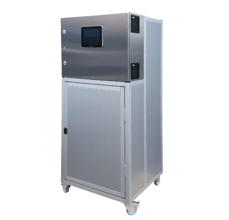 ECA Flowsystem med kontinuerligt output på 150-200L/time, anlægget producerer Mixed Oxidised Water (MOW) i styrke 4500ppm. Da dette anlæg er et membran-anlæg, kan de 2 komponenter (hypoklorsyre og base) også anvendes hver for sig.