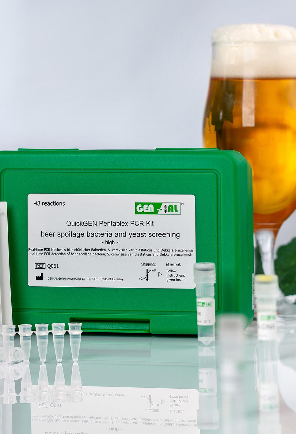 Med GEN-IAL® løsningen tilbyder vi et system til proces- og færdigvarekontrol. Gennem de forskellige testkits sammensættes løsninger til monitorering af de specifikke ”beerspoilers” du har brug for i dit bryggeri. Løsningerne kan tilpasses til dit ønske, nogen ønsker hurtige resultater, andre ønsker sensitiv detektion. Specifik identifikation af en ”beerspoiler” er også muligt ved at kombinere forskellige metoder/prøveforberedelse og analyse ved hjælp af vores PCR løsninger.