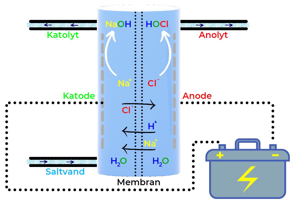 ECA vand (Electro Chemically Activated) producers hos Food Diagnostics, i et membran-anlæg, hvor anode og katode er separeret af en membran, som tillader passage af ladede stoffer.