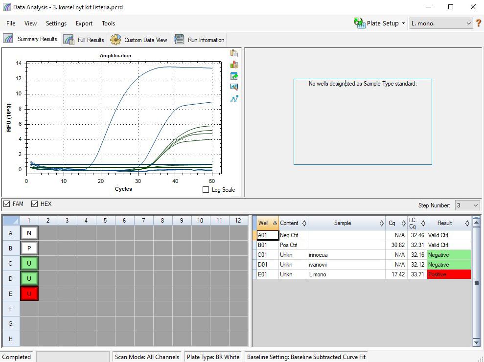 3. Instrumentsoftware - PCR-systemet styres af software, hvor temperaturkurven (termocyklus), detektionsbølgelængder og prøveopsætning vælges. Softwaren vil automatisk generere en rapport der viser, om prøverne har kørt tilfredsstillende og om de er positive eller negative mht. det gen (kunne eksempelvis være fra en bakterie eller en allergen fødevare), der analyseres for.