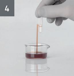 Vask ampullerne to gange med demineraliseret vand. Fjern overskydende vand ved at vende ampullerne på hovedet på et stykke køkkenrulle, men bank ikke på ampullerne.