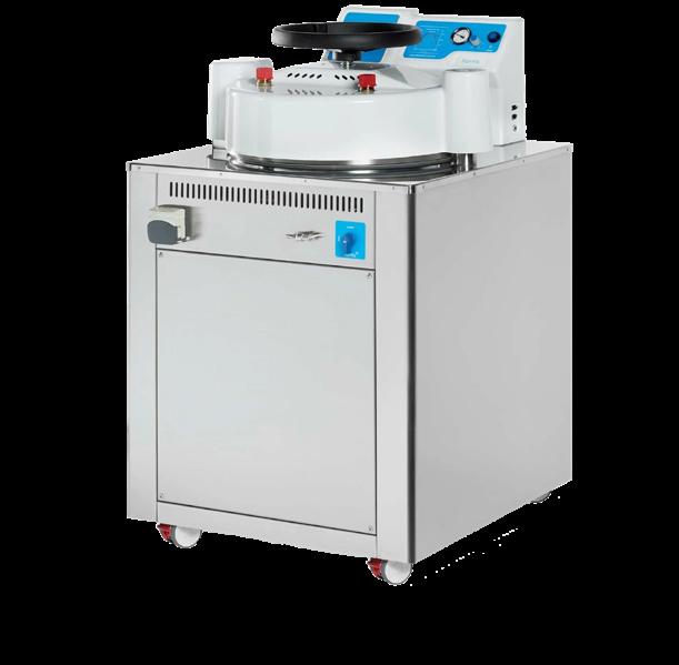 Vertikal gulv-laboratorieautoklave. Flerfunktionel autoklave til faste stoffer og væsker, designet til at dække steriliseringsbehovene i industrielle og forskningsmæssige omgivelser inden for den farmaceutiske, kemiske og bioteknologiske industri.