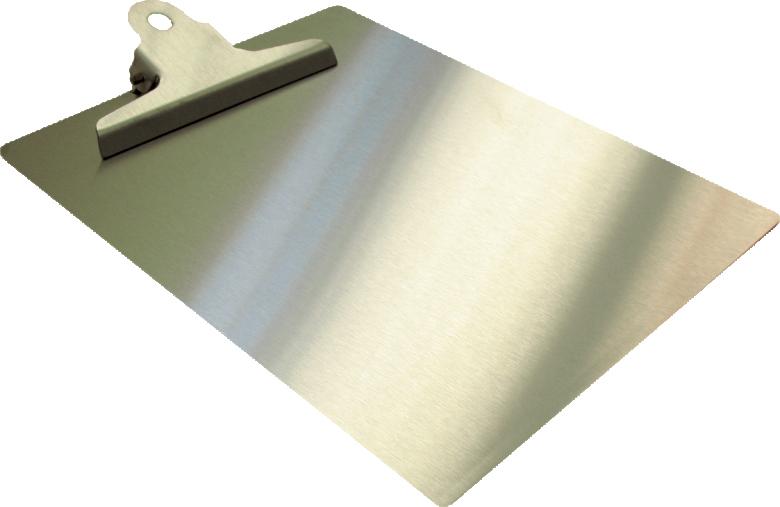 •Stainless steel clpiboards available in various sizes.