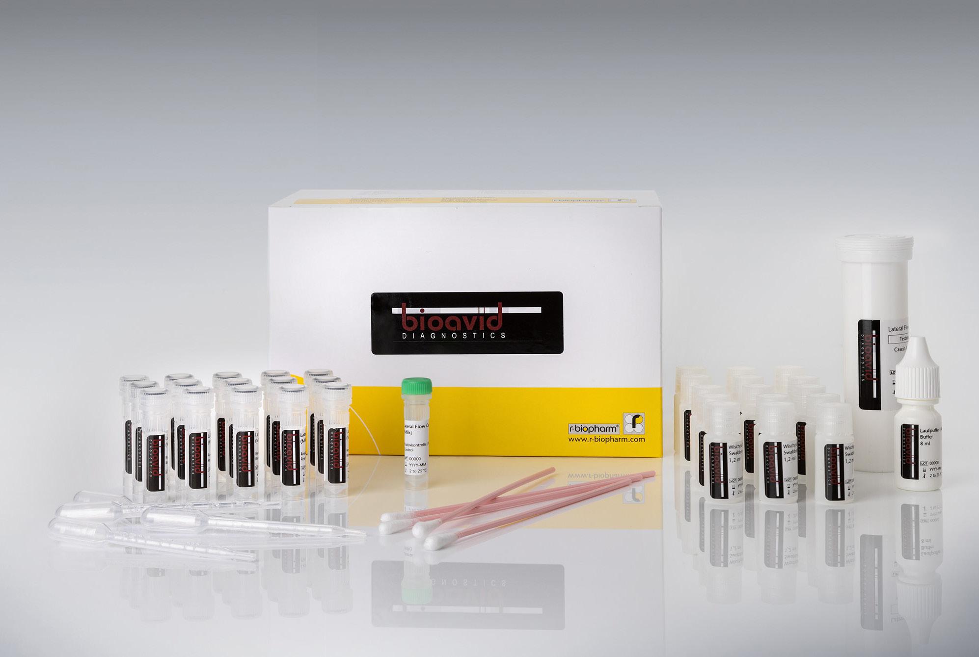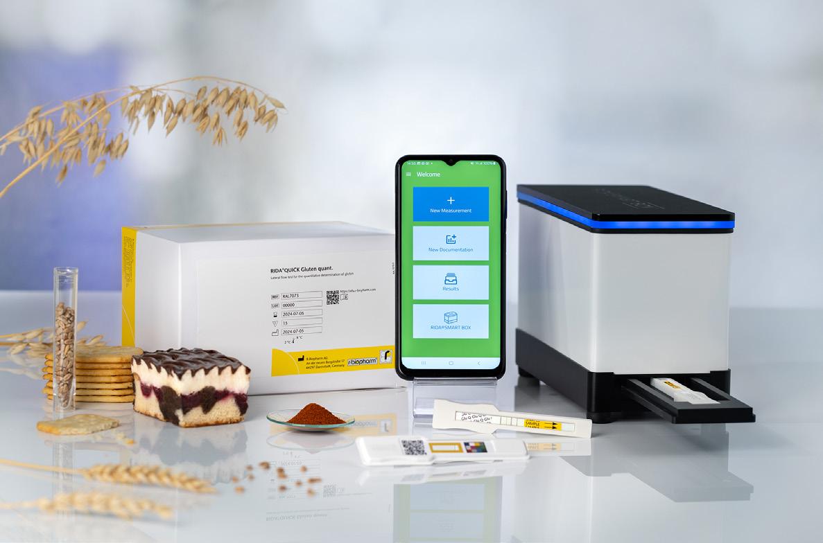 RIDA®QUICK Gluten quant är ett innovativt kit som gör det möjligt att kvantifiera mängden prolaminer från vete (gliadininer), råg (secaliner) och korn (hordeiner) från både svabbprover, CIP-vatten och livsmedelsprover, med hjälp av RIDA®SMART APP eller en RIDA®SMART BOX. Kittet är det enda kvantitativa Lateral flow testet på marknaden som använder R5-antikropp.