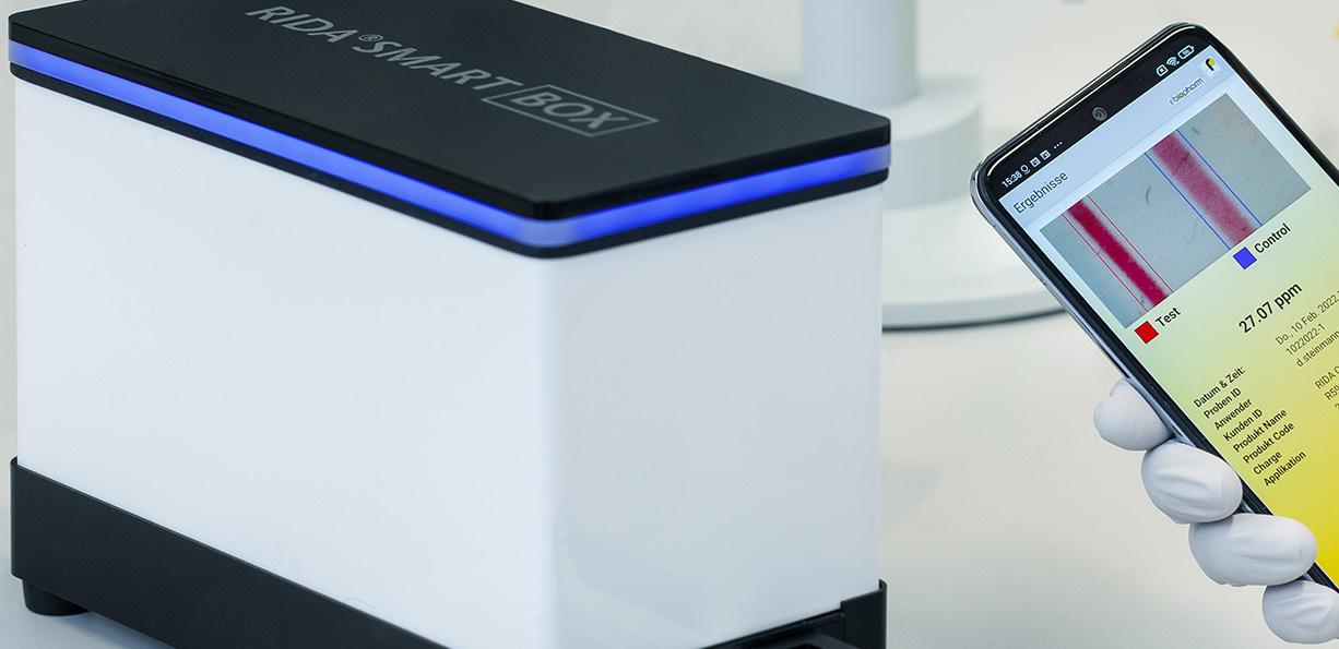 RIDA®SMART BOX er en innovativ lateral flow billedenhed til den automatiske udlæsning af RIDA®QUICK mykotoksin LFD-tests i kombination med RIDA®SMART APP, softwareapplikationen til analyse og kvantificering