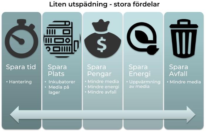 För ett prov på 375 g måste 3375 ml BPW tillsättas enligt standardprotokollet. Vid användning av PIF- supplement tillsätts 1125 ml BPW och 150 μl rehydrerat PIF-supplement för samma provmängd. Så en besparing på 2250 ml BPW per prov.