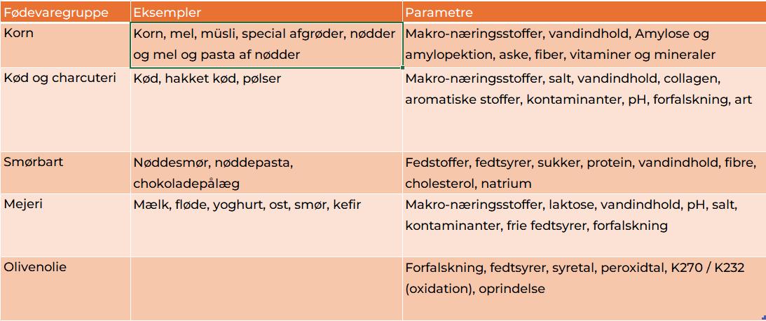 • Multikomponentanalyse, Flere næringsstoffer (f.eks. vand, fedt, protein) kan måles samtidig.