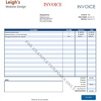 Proof of Payment: Can be one of the following: a credit card or check, bank statement, or wire transfer/ACH confirmation