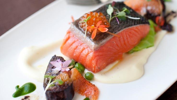 The french dishes include boeuf bourguignon, crepes, and salad nicoise. american classics are burgers (chicken, lamb, beef, salmon or veggie), grilled ahi tuna salad, and prime rib. Breakfast is served all day.