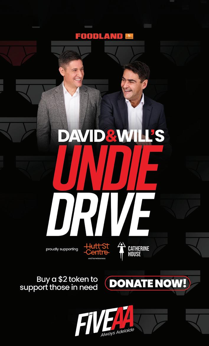 FiveAA Undie Drive. This August, over $6,000 was raised by generous Foodland customers through our FiveAA David & Will’s Undie Drive. The money raised went directly to supporting two very important charities, Catherine House and Hutt St Centre, supporting men and women experiencing homelessness, as well as broader communities in South Australia.