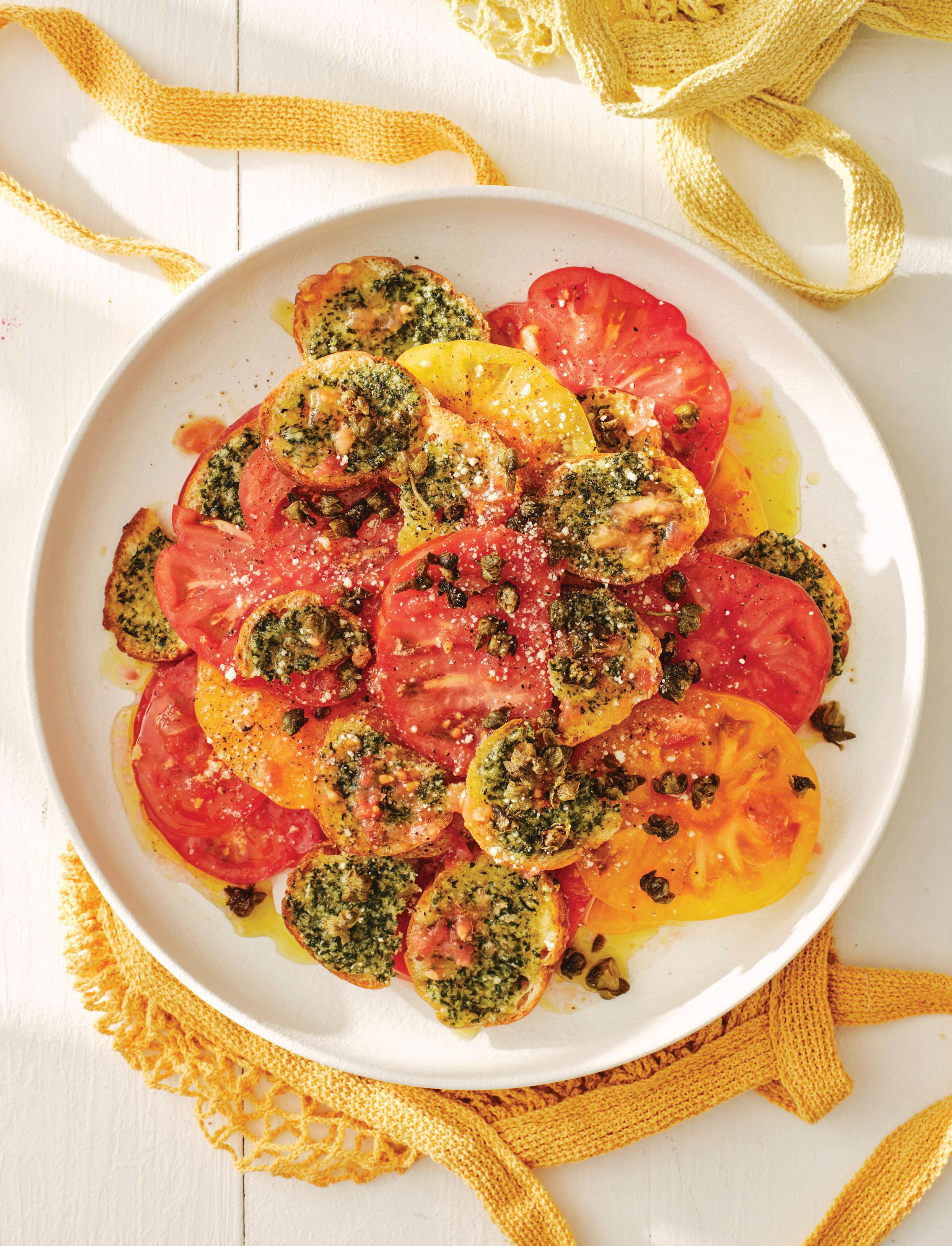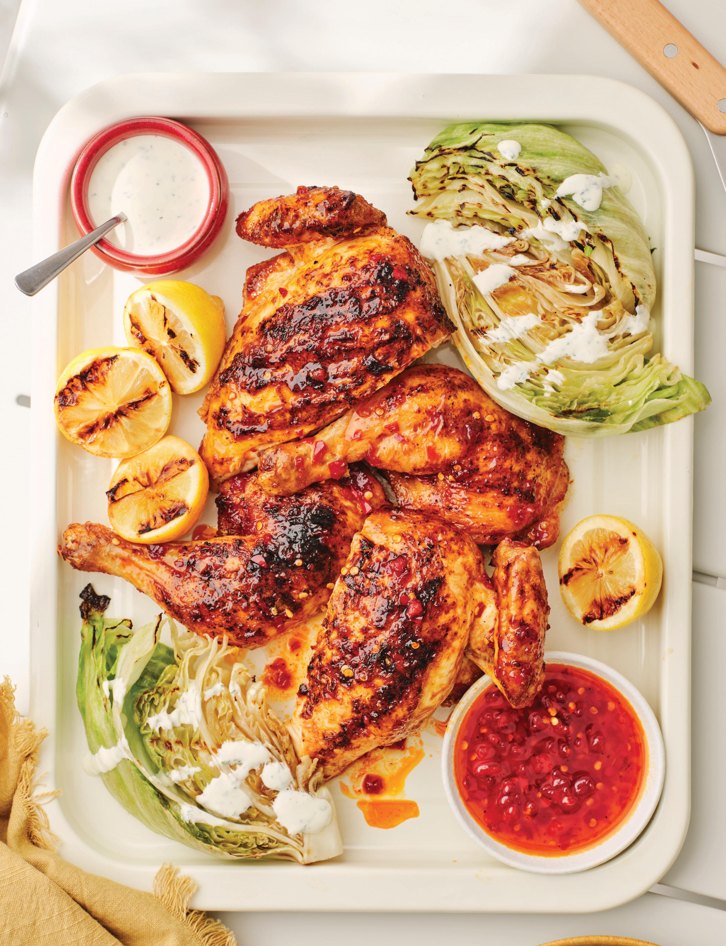 In this Edition, you’ll find our 20-minute (or less) weeknight meals, such as a classic Summer Chicken Parmigiana. For those who know their way around a BBQ, we’re turning up the heat with some Prawn and Chorizo Skewers and Hot Honey Chicken with Charred Iceberg. For those who need some inspiration when they’re told to “Bring a Plate”, we’ve got you covered with some crowd-pleasers, such as our Heirloom Tomato Panzanella Salad, and our personal favourite, the Summer Lamington Swiss Roll.