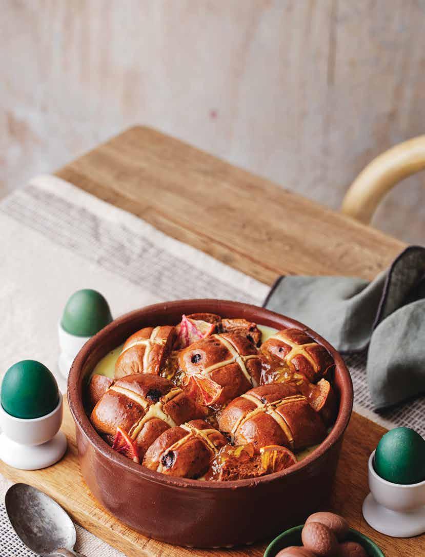 CHOCOLATE & MARMALADE HOT CROSS BUN BREAD & BUTTER PUDDING (PAGE 19)