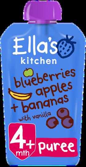 Ingredients: Organic apples (52%), organic bananas (36%), blueberries (11%), vanilla extract (1%), lemon juice concentrate