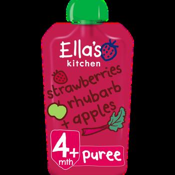 Description: The product for infants consist of pureed strawberries, rhubarb, and apples from an organic farm with nothing else added!