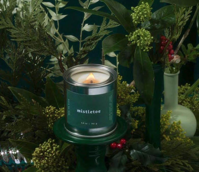 100% vegan and pet friendly with clean, non-toxic ingredients, plus every candle sold plants a tree! In winter classic mistletoe scented with pine, spiced berry, holly, cinnamon & clove. Candy Cane is festive with cool peppermint and just the right touch of vanilla