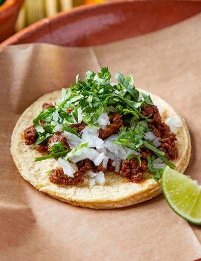 includes up to 3 tacos per person served on a corn tortilla topped off traditional Mexican with cilantro and onions only, one cheese quesadilla, and choose one side (rice & beans, elote, or chips & salsa)