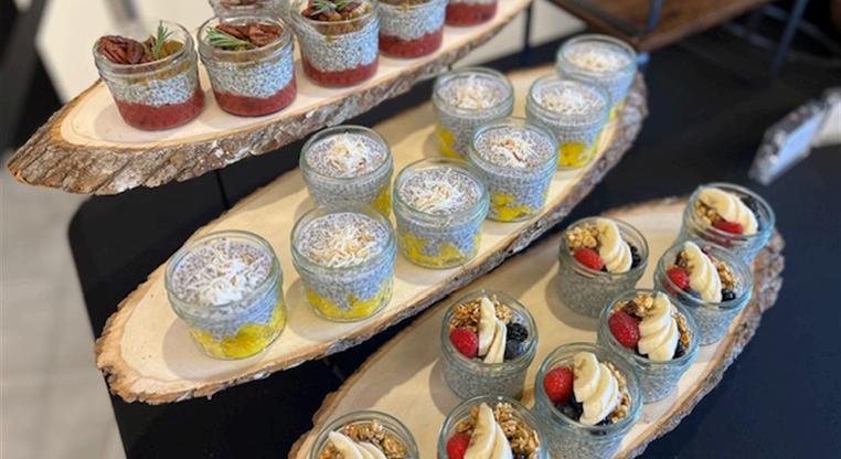 Host local artisans and food makers — think micro-bakeries, hot sauce startups, woman- or minority-owned snack brands. Not just delicious — it shows your clients your commitment to the local economy.