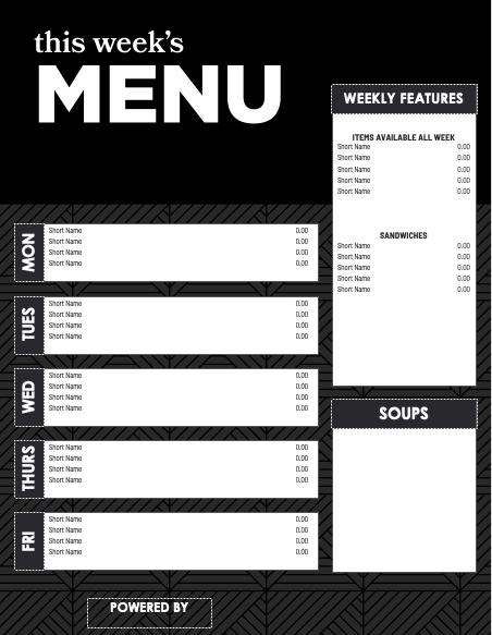 8.5x11 weekly menu