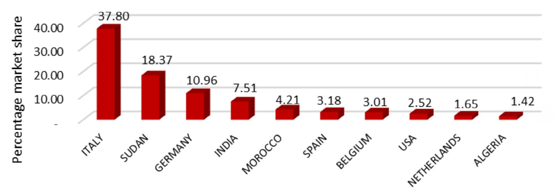 Higher production has increased exportable supplies. During the 2023/24 market year, exports from the Pearl of Africa are anticipated to increase 4 percent year-on-year to 6.52 million bags. According to the UCDA, Uganda’s top export destinations include Italy, Sudan, Germany, India, the United States, and Morocco. According to the March 2023 UCDA report, Uganda accounted for 21% of African coffee exports, while Sudan consumed 17.66% and Morocco consumed 1.39%. Locally, some of the exporting companies of Ugandan coffee are UGACOF (U) Ltd, Ideal Quality Ltd, Olam Uganda Ltd, Kyalanyi Coffee, Touton Uganda, KUWACOM (U) Ltd, JBER Coffee Ltd, and Ibero Coffee.