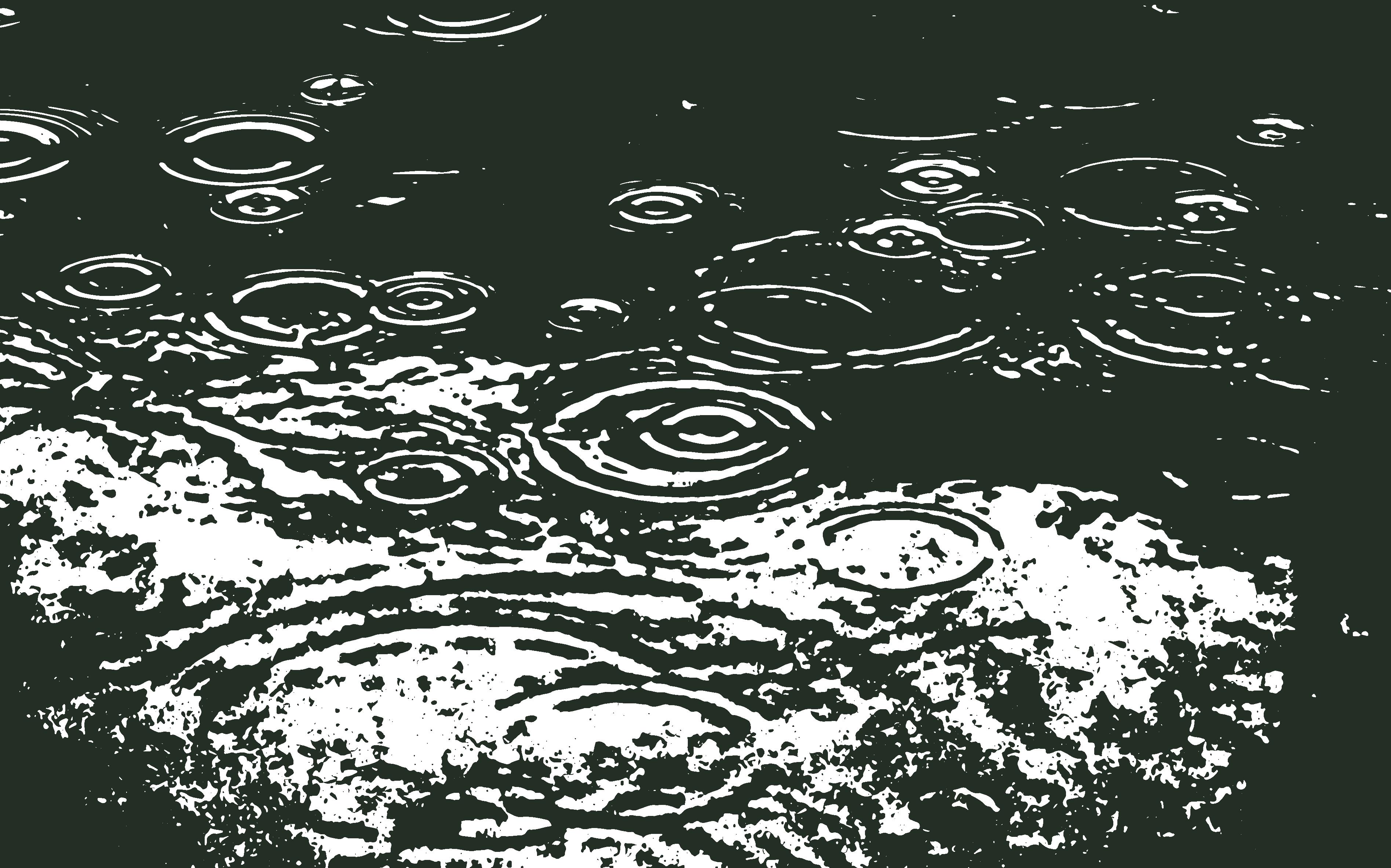 It begins in minuscule spirals but now home on our porch I think of all the patterns the rain creates and all intersections within earth-cycled water.