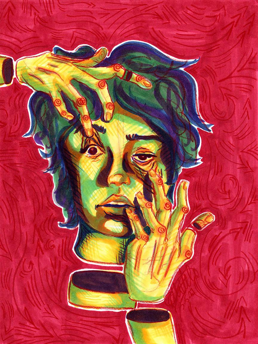 Where does your heart live in your body? Everywhere. There is not a place on the map of my body that does not hurt, that does not miss you, that does not miss some imagined version of myself. I don’t know what is wrong with me. Maybe I’m stuck on the top of a broken rollercoaster. Maybe I am walking up the stairs in a house I have always lived in and am always missing the bottom step. Maybe I’m a bad person and I am the only one who knows. It is a huge secret to carry. I am tired of it in ways I do not understand. I am not a person, I am actually twenty trembling hands in a trenchcoat, standing outside of my house, hoping someone on this street is as sad as me, in the exact same way. When I get anxious, I like to run my hands through each other; I like the idea that some part of my body can feel comforted by another part of my body. I feel comforted by no parts of my body. Maybe I’ll be like this forever. So what. I’ll let the depression stick to my body like honey and I will like the taste of me despite. I’ll pack an extra coat. I will eat some fruit and try to say smart and good things. I will love people, and maybe one of them will be me. I’ll look at my hands, holding each other when I am absent, and will marvel at myself continuing.