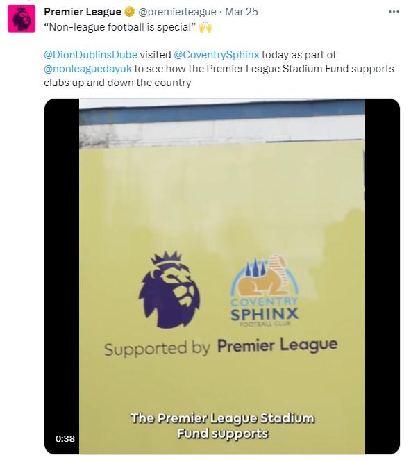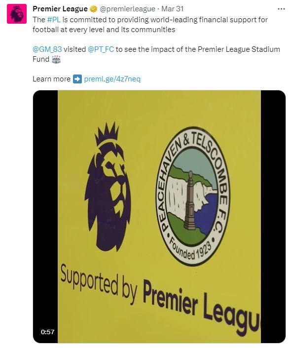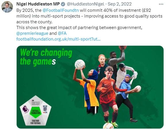 We started rolling out signage for sites who received Premier League Stadium Fund grants from FY19. There are 354 sites in total and the roll out will be completed by Autumn 2024.