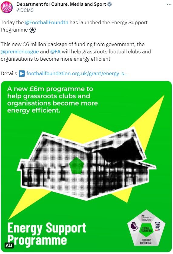 In March, we launched a new £6m package of support to help grassroots football clubs and organisations with rising energy costs. The Programme is broken down into two Funds: The Energy Fund and The Floodlight Fund. The Energy Fund will be targeted at energy-saving measures for clubhouses and pavilions. The Floodlight Fund will support the upgrading of metal halide ('halogen') floodlights to LED floodlights on our funded floodlit football turf pitches (FTPs).