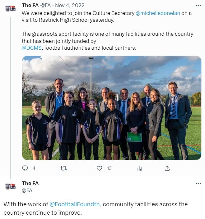 • Targeted emails to grass pitch sites and MPs to inform them of our commitment and funding.